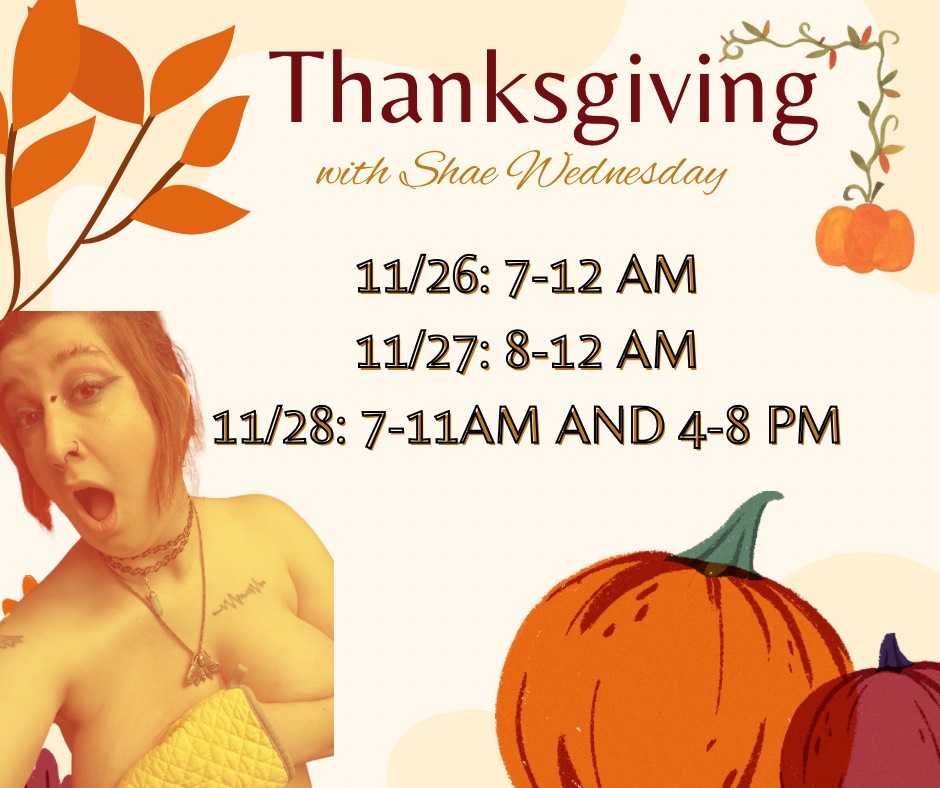 Also streaming 11/26 7 a til noon EST is Shae Wedesday!